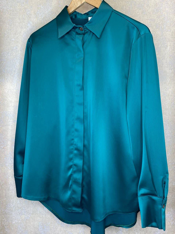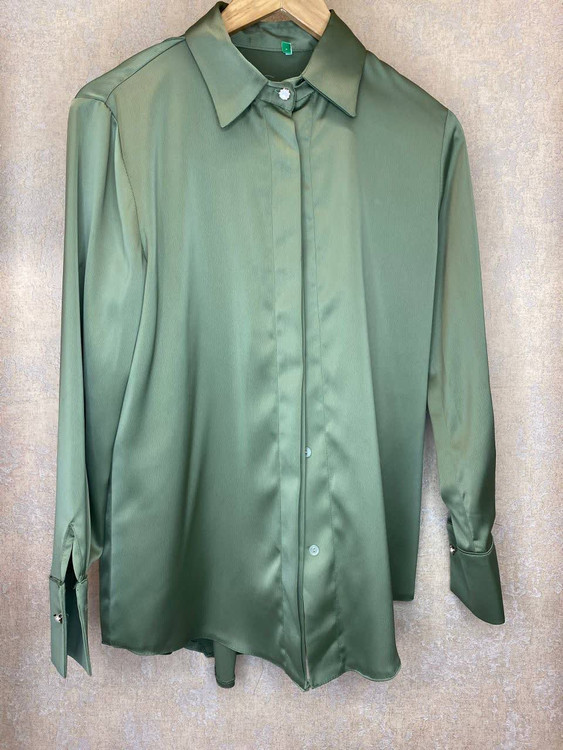 شومیز ساتن جلو دکمه دار و آستین بلند در سایزبندی و رنگهای متنوع